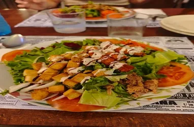 La comida es normalita, pero las cantidades son una locura para lo que cuesta el menú. Al final, esas dos estrellas se las lleva por la relación cantidad-precio.